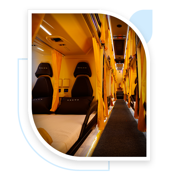 Now, once a passenger boards the bus he will be surprised by the inner comfort of the bus. The buses have all the latest amenities like WiFi, charging point, water bottle and central TV. The seats are really very comfortable and create a feeling of a cosy bedroom. We have almost all the luxury brand buses in our fleet. Our luxurious fleet includes Mercedes Benz Multi-axle buses, Volvo Multi-axle buses, and Scania Multi-axle comfort buses. These buses help in smoothening the journey. Our motto to change the perception of bus travel makes us enhance our luxury levels regularly.